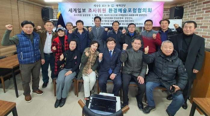 [세계로컬타임즈 이종학 기자] 세계일보 조사위원 환경예술포럼협의회(회장 이행복·앞줄 오른쪽 두번째)는 지난달 19일 최승묵(앞줄 가운데) 세계일보 조사국장과 이종학(앞줄 맨오른쪽) 세계로컬타임즈 문화예술본부장 등이 참석한 가운데 2월 월례회를 갖고 기념촬영을 하고 있다.