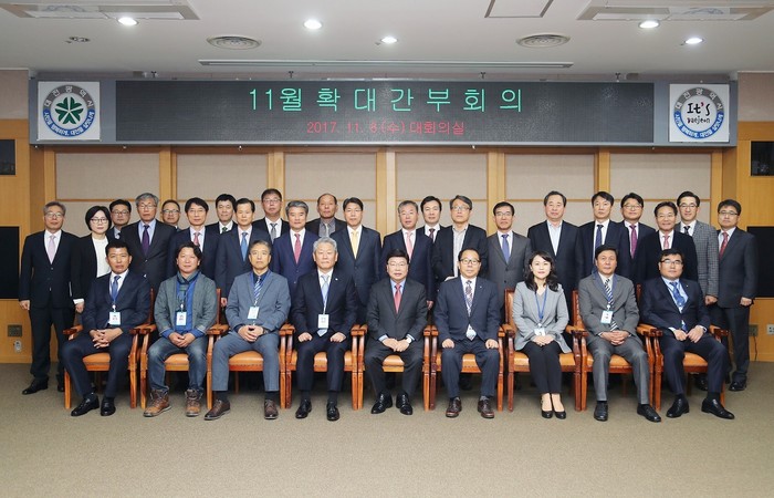| ▲권선택 대전시장(앞줄 가운데)이 11월 확대간부확대회의에서 총 8명 명예시장을 위촉하고 실·국장들과 함께 기념촬영하고 있다. <사진제공= 대전시청> |