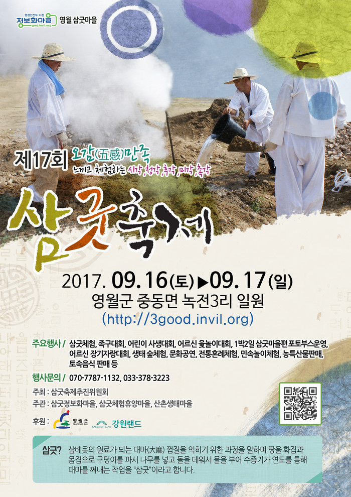 [세계로컬신문 현중순 기자] 강원도 영월군 삼굿정보화마을이 오는 16일부터 17일까지 이틀간 중동면 녹전3리 일원에서 제17회 삼굿축제를 연다.