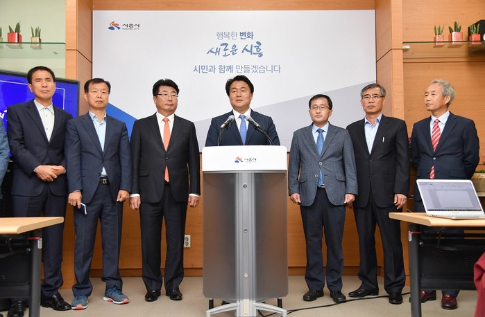 | ▲임병택 시흥시장은 지난 11일 취임 100일을 맞아 기자회견을 하고 있다. (사진=시흥시청 제공) |