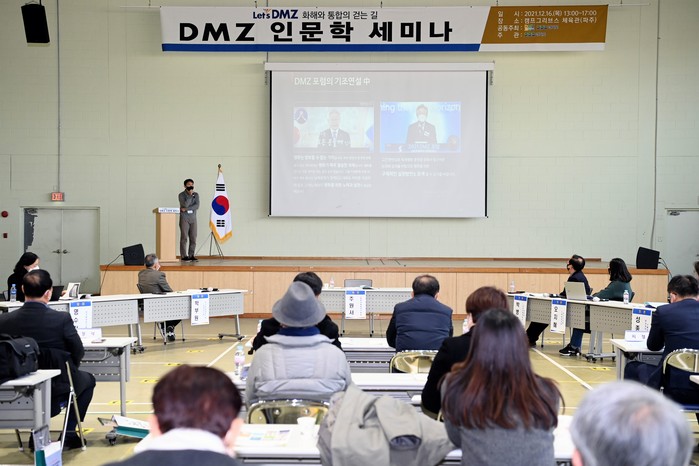 [세계로컬타임즈 한기선 기자] 경기도와 (사)DMZ평화네트워크는 지난 16일 오후 1시부터 파주 캠프그리브스 체육관에서 “Let’s DMZ, 화해와 통합의 걷는 길”을 주제로 한 'DMZ 인문학 세미나'를 개최했다.