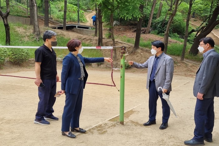 이곳 배드민턴장은 지역주민들이 많이 이용하는 시설물로 전반적인 상황을 꼼꼼히 살펴본 후 이용 주민들에게 일일이 안부를 묻고 대화를 나누며, 사용하면서 불편 사항이나 건의 사항 등을 파악했다.