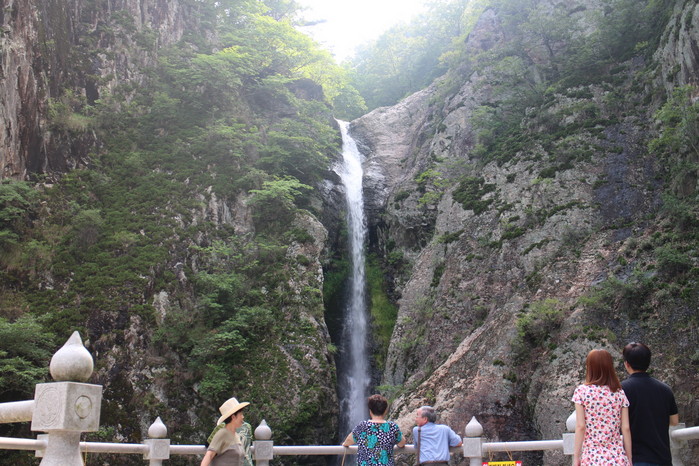 | ▲ 충북 영동군 심천면에 위치한 옥계폭포를 방문한 관람객들이 시원한 물줄기의 폭포수를 바라보고 있다.<사진제공=영동군청> |