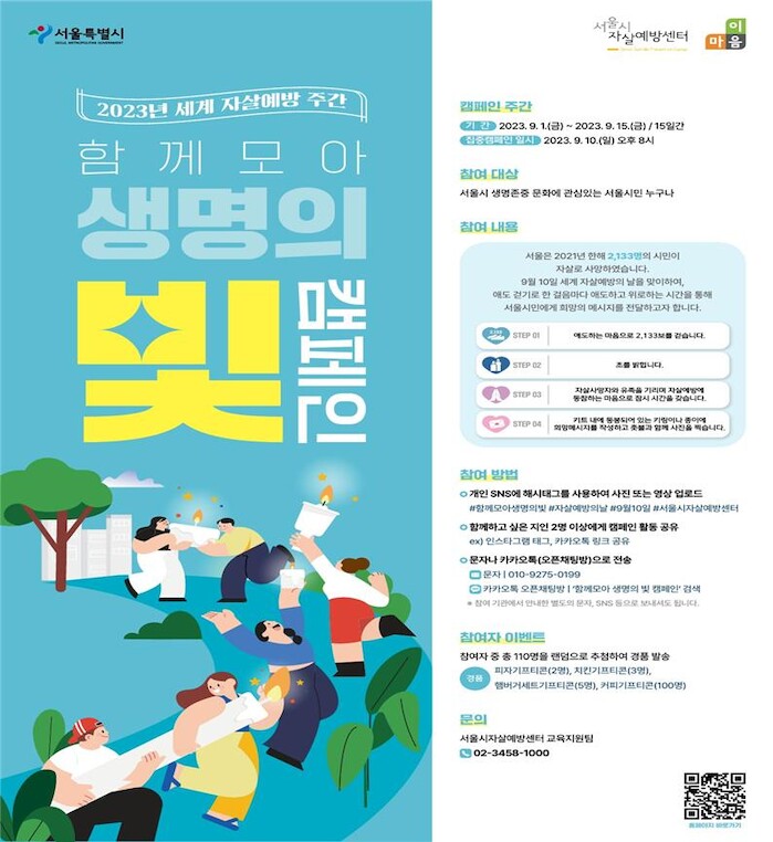 2023 세계 자살예방주간 캠페인은 ‘함께모아 생명의 빛’이라는 주제로 9월 1일~15일까지 15일간 열린다.