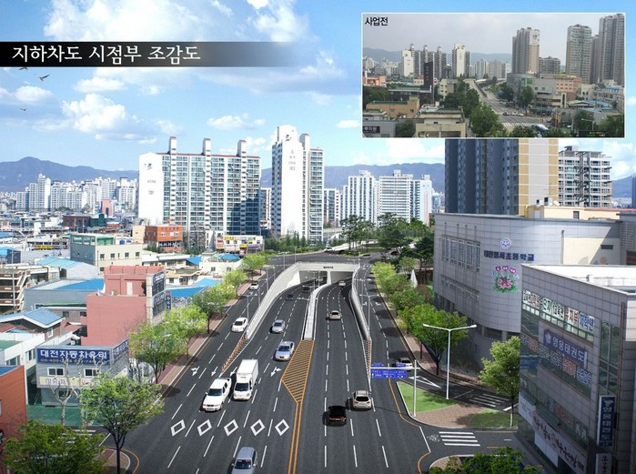 지하화 공사는 연장 1km(동구 삼성동성당네거리~홍도동 경성볼링센터 앞)로 2015년 8월 경부선~대전선 직하부 182m에 대한 지하차도 공사가 착공됐고 올해 5월 시도 철도시설공단 구간을 제외한 818m를 시비 971억원을 들여 왕복 4차로에서 6~8차로로 확장하는 사업이다. 시는 2019년 12월 말 개통 예정으로 공사를 진행한다.