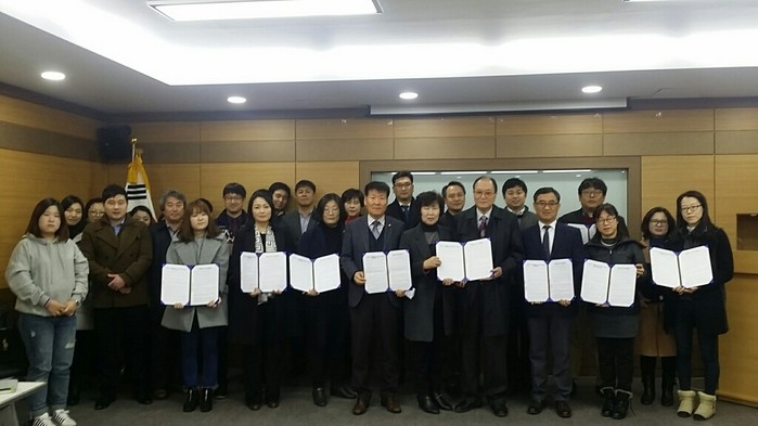 | ▲ 창원시가 지난 6일 노인일자리지원기관 등 민간수행기관 18개소와 ‘2017년 노인일자리 및 사회활동지원사업 위탁협약’을 체결한 후 단체로 기념촬영하고 있다.<사진제공=창원시청> |