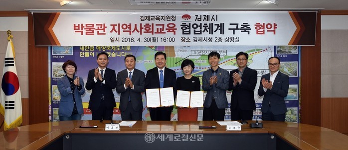 [세계로컬신문 조주연 기자] 전북 김제시와 김제교육지원청이 지역 정체성에 기반한 지역 교육 주체(학생·학부모·교원) 정립 및 지역 교육발전을 위해 '박물관 지역사회교육 협업체계 구축' 협약을 체결했다.