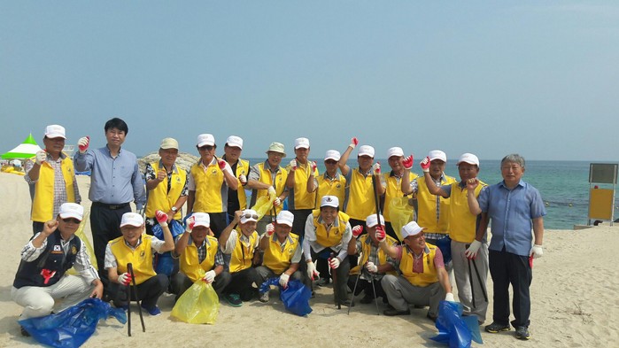 | ▲ 대한노인회 경포동분회(분회장 김무열) 회원들이 2일 경로당 회장·사무장 연석회의에 앞서 사근진해수욕장에서 담배꽁초 줍기 자연정화활동을 실시한 후 기념촬영하고 있다. 이날 허병관 강릉시의회 내부복지위원장과 이종태 경포동장이 어르신들과 함께 참여해 주민과 관광객들에게 호응을 얻었다.<사진제공=강릉시청> |