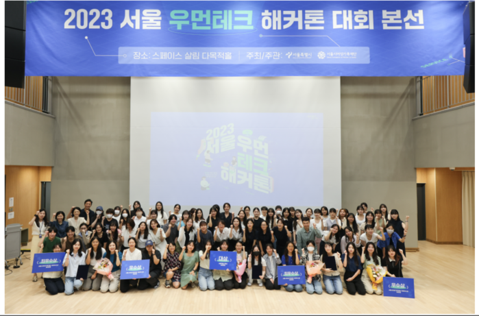 [세계로컬타임즈 이효진 기자] IT 분야에 관심있는 청년 여성들이 ‘동행·매력 특별시 서울’을 위한 서비스·기술 아이디어를 발표하는 ‘2023 서울 우먼테크 해커톤’ 본선이 9일 대방동 스페이스 살림에서 열렸다.