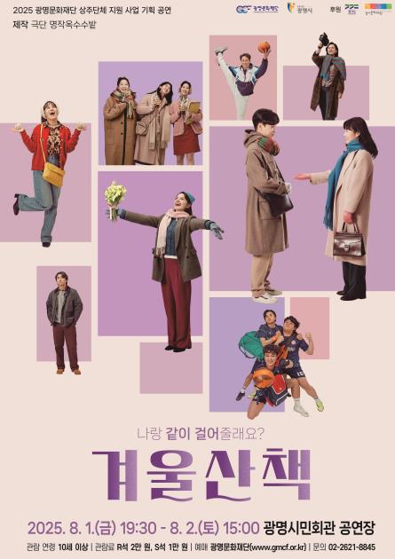 [세계로컬타임즈] (재)광명문화재단은 2025 공연장 상주단체 극단 명작옥수수밭의 기획 공연 '겨울산책'을 오는 8월 1일과 2일 광명시민회관 공연장에서 선보인다.