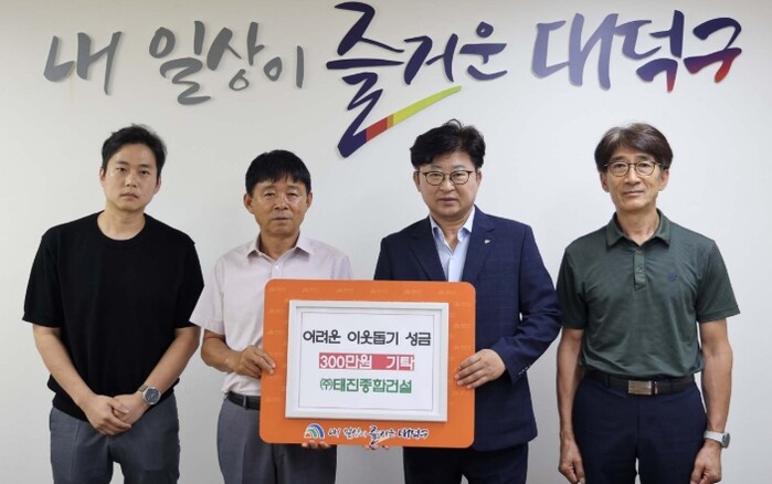 한편, ㈜태진종합건설은 지난해에 이어 2년 연속 대덕구에 성금을 기탁하며, 지역 경로당과 소외계층을 위한 지속적인 나눔 활동을 이어가고 있다