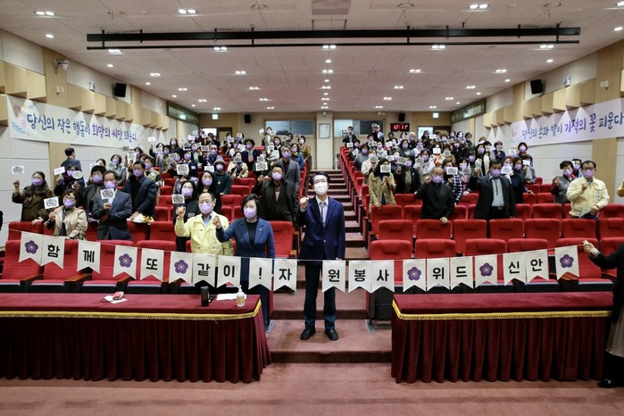 [세계로컬타임즈 조문배 기자] 신안군 여성자원봉사자회는 지난 17일 제16회 자원봉사자의 날을 기념하여 신안군청 공연장에서 자원봉사활동 향상 유공 수상자 및 가족, 자원봉사단체 회원 등 99명이 참석한 가운데 '2021년 신안군 자원봉사자의 날' 기념식을 가졌다고 18일 밝혔다.