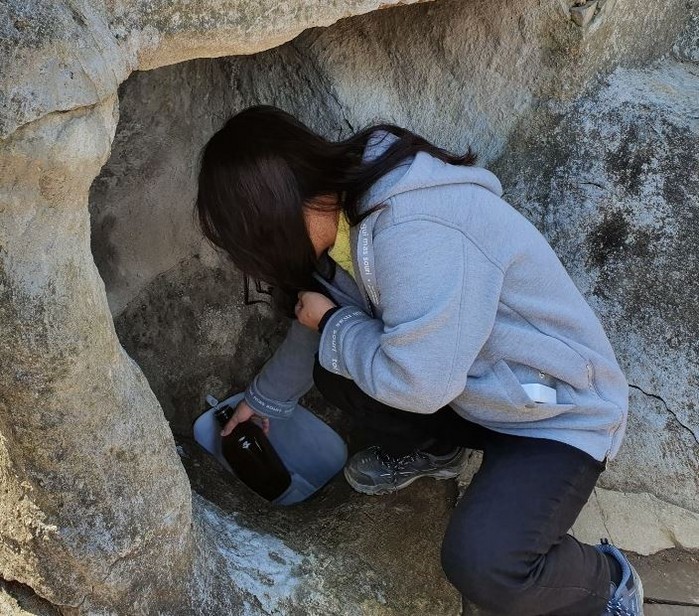 | ▲ 인천 서구의 한 약수터에서 수질검사를 위해 시료를 채취하고 있다. (사진=인천서구 제공) |