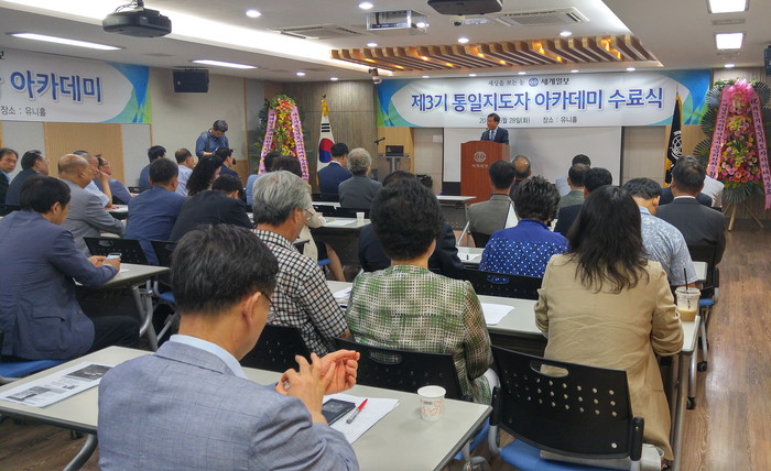 [세계로컬신문 온라인뉴스팀] 세계일보가 남북평화통일시대를 열어가기 위해 마련한 ‘제3기 통일지도자 아카데미’의 수료식이 6월 28일 세계일보 유니홀에서 개최됐다.