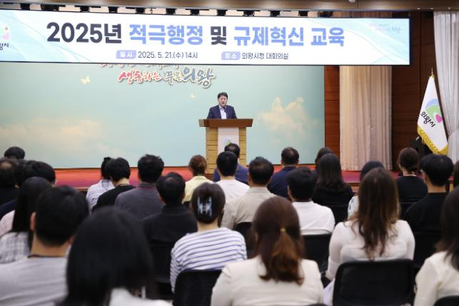 [세계로컬타임즈] 의왕시는 21일 시청 대회의실에서 전 직원을 대상으로 ‘2025년 적극행정 및 규제혁신 역량 강화 직원 교육’을 실시했다.