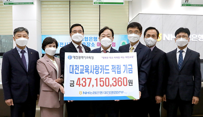 대전교육사랑카드는 시교육청이 2004년부터 NH농협은행과 제휴해 만든 신용카드로, 이번에 전달받은 적립금은 대전광역시교육청과 산하기관(학교) 및 대전교육가족들의 대전교육사랑카드 이용액의 일정률을 적립해 조성된 것이다.