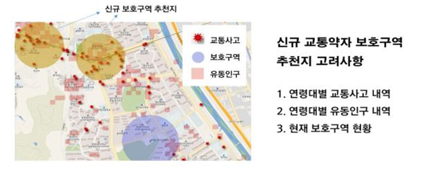 어린이·노인 보호구역 지정에는 주변을 통행하는 교통약자의 보행체계와 교통사고 내역에 대한 분석이 중요하다. 그러나 현장에서 활용할 수 있는 구체적 분석 방법이 없어 담당 공무원이나 교통경찰관의 직관적 관측에만 의존하는 경우가 많아 보호구역의 관리 체계성과 일관성이 부족하다는 문제가 있었다.