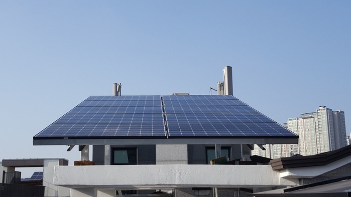 | ▲ 단독주택 옥상에 태양광이 설치되어 있는 모습. (사진=인천 동구 제공) |