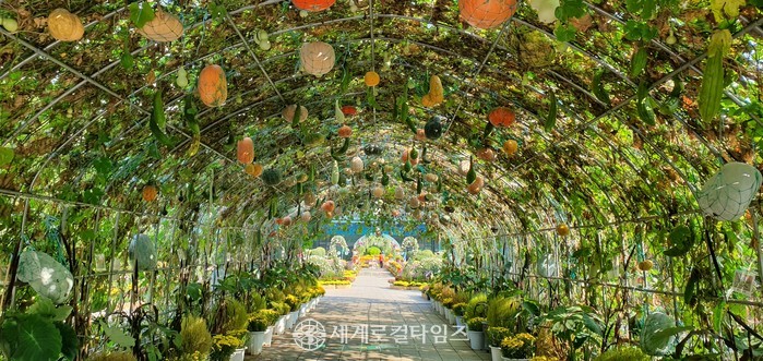 | ▲ 형형색색 호박넝쿨들이 터널을 이루고 있다.(사진=유영재 기자) |