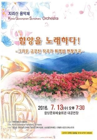 ▲ 오는 13일 함양문화예술회관 대공연장에서 열리는 '지리 산음악제' 포스터.<사진제공=함양군청> |
