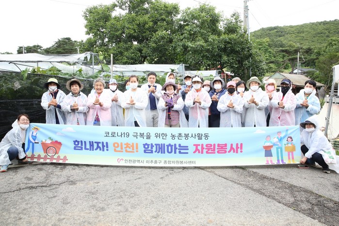 [세계로컬타임즈 장선영 기자] 인천 미추홀구 종합자원봉사센터는 코로나19 극복을 위한 ‘힘내자! 인천! 함께하는 자원봉사!’ 농촌봉사활동을 실시했다.