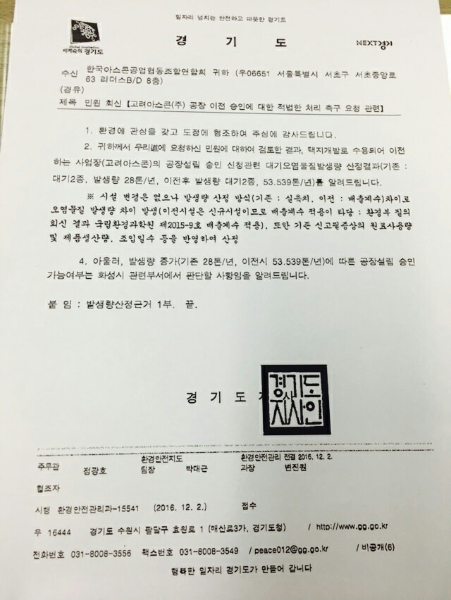 하지만 사업장 이전 지역인 정남면 문학리 주민들의 반발로 화성시는 경기도로 관련법에 대한 재검토를 의뢰하는 등 공장이전 승인에 제동이 걸렸다.