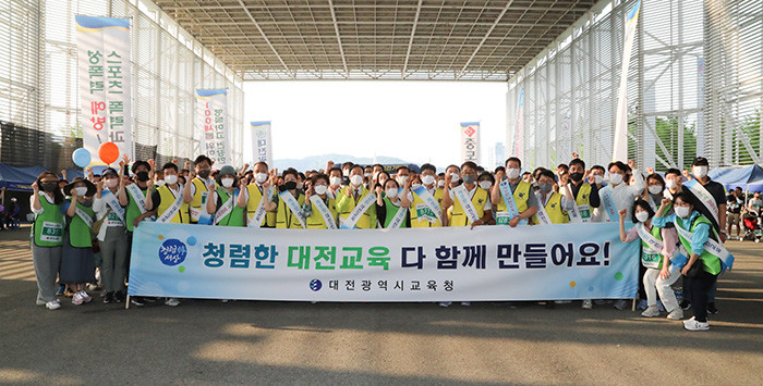 [세계로컬타임즈 민순혜 기자] 대전광역시교육청(교육감 설동호)은 제11회 月花水木 대전달빛걷기대회(주최: 중도일보, 대전광역시체육회)에 참여한 시민들과 함께 청렴문화 확산을 위해 11일 대전 엑스포 시민광장에서 교육청 직원 150여 명과‘청렴한 대전교육, 다함께 만들어요’라는 청렴 캠페인을 실시했다고 밝혔다.
