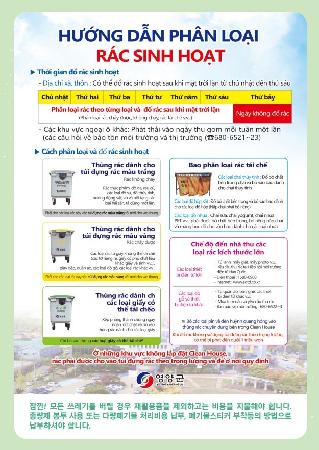 또 베트남어로 설명된 배출방법도 함께 수록해 다문화가정의 영양군 정착에 도움을 주고 있다.