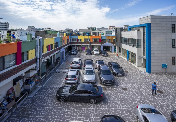 | ▲ 환경개선사업으로 변신한 용남시장 공영주차장 전경. (사진=미추홀구 제공) |