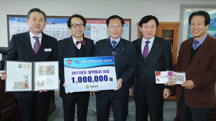 [세계로컬신문 최옥성 기자] 경남도는 13일 오전 9시30분 도지사 권한대행 집무실에서 대한결핵협회 울산,경남지부(지부장 박양동)로부터 크리스마스 씰을 전달받고 결핵퇴치성금을 전달하는 ‘2017년 크리스마스 씰 증정식’을 가졌다.