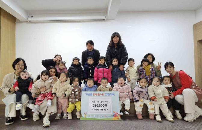 이번 기탁금은 어린이집 원아들이 사용하지 않는 장난감과 의류 등을 직접 사고파는 체험형 프로그램인 ‘아나바다 시장놀이’를 통해 마련됐으며, 아이들이 자원 절약과 나눔의 의미를 자연스럽게 배우는 계기가 됐다.