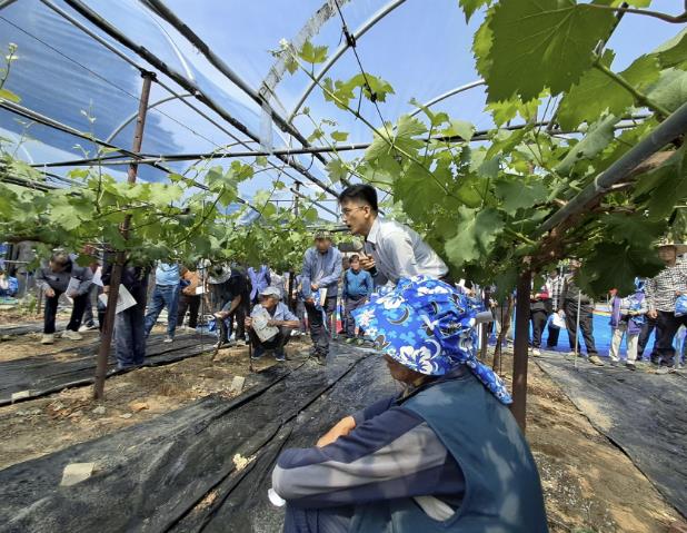 이번 교육은 여름철 고온으로 인한 착색 불량, 열매 터짐(열과), 햇볕 데임(일소) 등 생육 피해를 예방하고, 고품질 포도 생산을 위한 기술을 보급하기 위해 마련했다. 대전시 농업기술센터 서진석 팀장이 강사로 나서 이론 교육과 현장 실습을 병행하며 교육 효과를 높였다.