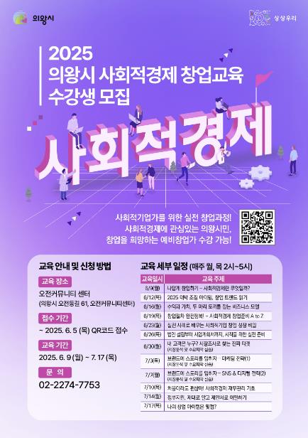 교육 신청은 6월 5일까지 포스터 내 QR코드를 통해 가능하며, 기타 자세한 사항은 의왕시 자치행정과로 문의하면 된다.