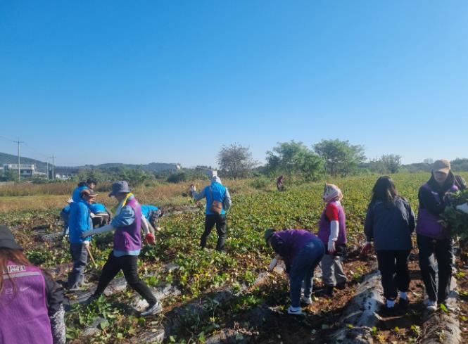 이날 참여자들은 고구마 수확을 준비중인 밭에서 줄기 제거 작업을 도우며 부족한 농촌 인력 보충에 힘을 보탰다.