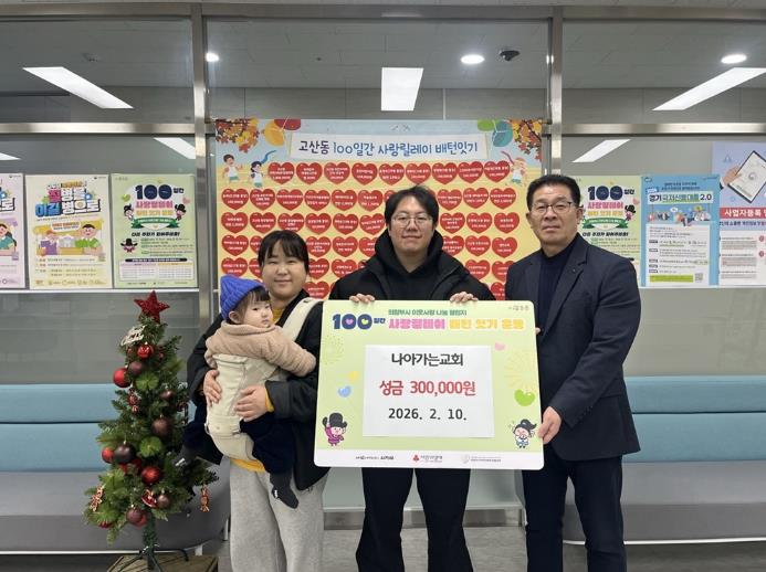 이봉득 동장은 “나눔에 동참해 주신 나아가는교회에 감사드린다”며 “기탁된 성금은 도움이 필요한 곳에 사용하겠다”고 말했다.