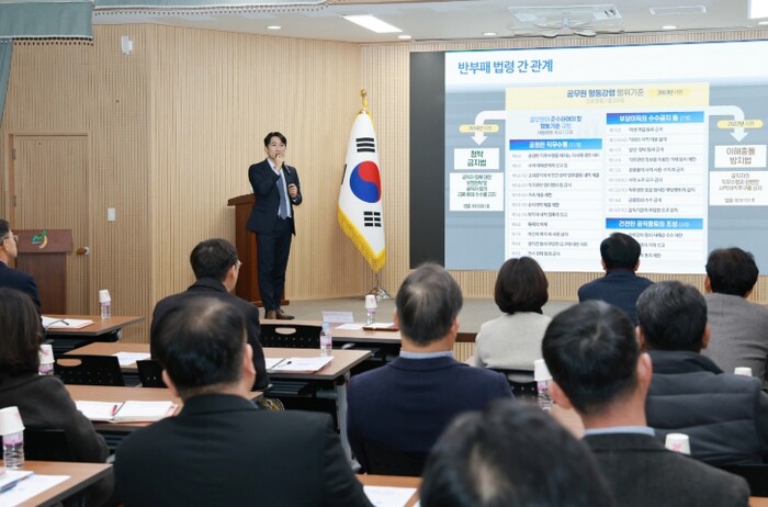 교육은 △청탁금지법 △공무원 행동강령 △이해충돌방지법 등 이론 교육과 직무수행 과정에서 발생할 수 있는 위법·부당, 갑질 등 사례 소개 중심으로 진행됐다.