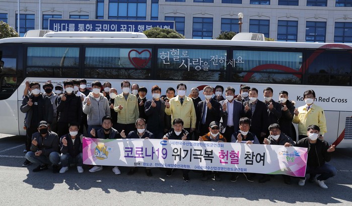 한국수산업경영인 완도군연합회 김동수 회장과 200여명의 헌혈이 지난 16일 오전 10시부터 오후4시까지 전라남도 해양수산과학원 완도지원에서 진행됐다.