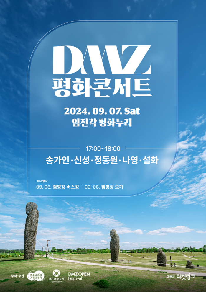 오는 9월 7일, 경기도와 경기관광공사가 주최·주관하여 열리는 DMZ 평화콘서트는 ‘열린 DMZ, 더 큰 평화’를 주제로 DMZ의 생태·평화·역사적 가치를 알리는 ‘DMZ OPEN 페스티벌’의 일환으로 진행된다.