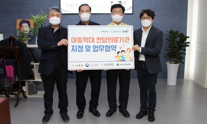 | ▲올해 3월 국립나주병원·나주종합병원·빛가람종합병원과 도내 최초 아동학대 전담의료기관 지정 업무 협약을 체결해 주목을 받았다.(사진=나주시) |