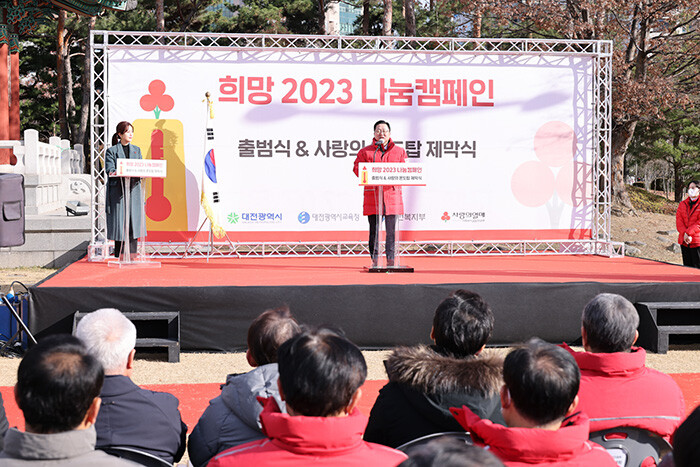 연말연시 이웃사랑 캠페인의 시작을 알리는 ‘희망2023 나눔캠페인’은 ‘함께하는 나눔, 지속가능한 대전’이라는 슬로건아래 12월 1일부터 내년 1월 31일까지 62일간 집중모금을 실시한다.