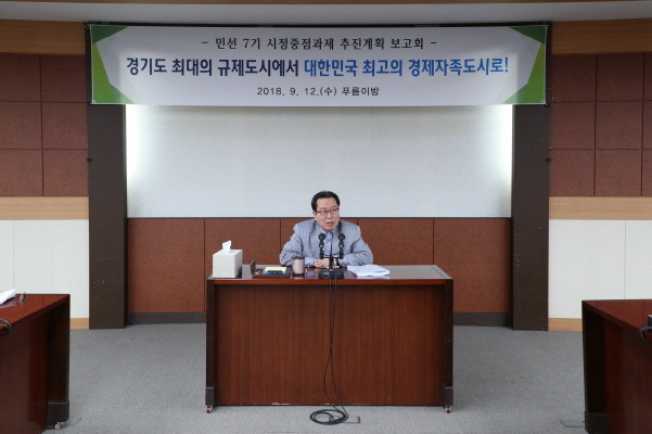 | ▲12일 조광한 남양주시장은 시청 푸름이방에서 남양주시 민선7기 시정중점과제 보고회 개최했다<사진=남양주시 제공> |