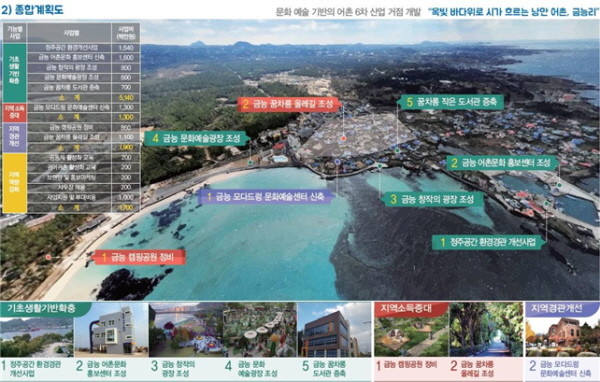 제주시 관계자는 “기본계획 수립 시 전문가 자문을 통해 경관디자인 등에 심혈을 기울일 예정”이라며, “이번 사업을 통해 금능리가 제주의 대표적인 명품 어촌마을로 거듭나도록 노력하겠다”고 말했다.