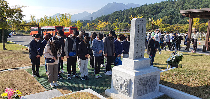 [세계로컬타임즈 민순혜 기자] 대전관평초등학교는 지난 20일 5학년 학생들과 국립대전현충원 독립유공자묘역을 참배하는 등 대전민주시민탐방길 학생 체험활동을 실시했다.