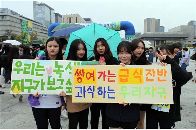 봉사시간 50시간 채우는 게 목표라서 참여했다는 신사중학교 3학년 유다현·김다나 학생, 자신이 만든 표어를 들고 선생님과 함께 걷는다는 대회취지가 좋아서 참가했다는 명일여고 1학년 김서희 학생은 '우리는 녹색 친구가 보고 싶어요'라는 피켓을 만들었다.