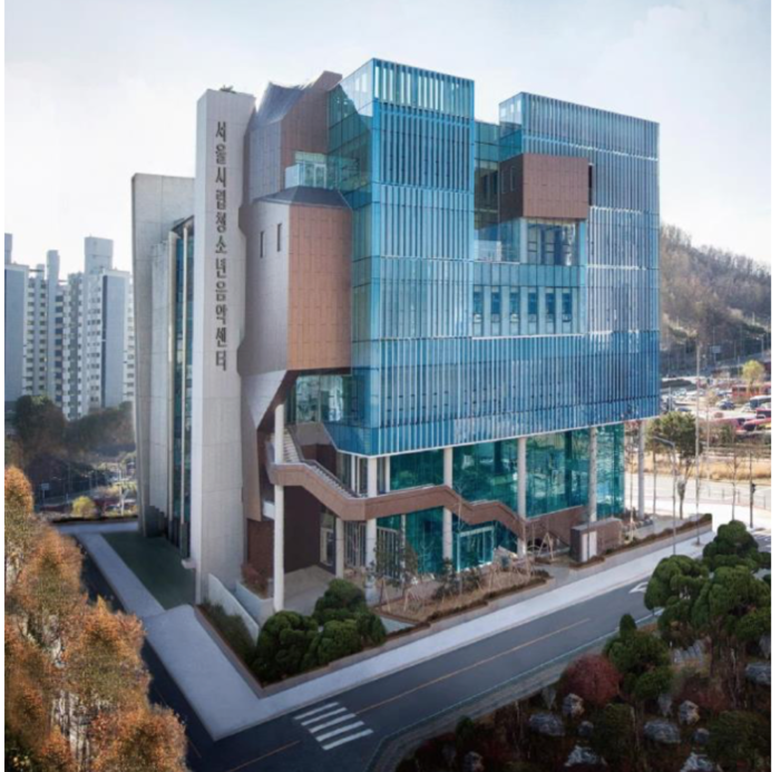 ‘시립청소년음악센터’는 수도권 내 유일한 ‘청소년 전용 음악특화시설’로 양천구 신정동에 연면적 5,422㎡, 지하 1층~지상 6층 규모로 조성됐다.