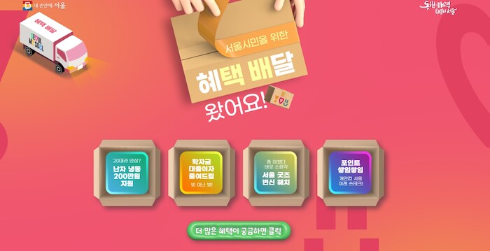 ‘서울시민 혜택 배달’이라는 이름에서 예상할 수 있듯 시민들이 서울시 주요 뉴스, 정보·이벤트 등을 볼 때 택배를 개봉하는 듯한 즐거움과 설렘을 느꼈으면 한다는 바람에서 시작됐다.