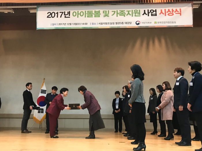 지난 13일 서울지방조달청에서 개최된 '아이돌봄 및 가족지원 사업 시상식'에서 여성가족부 장관상을 수상했다.