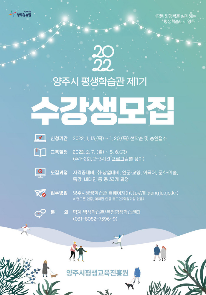 | ▲양주시는 오는 20일까지 2022년 평생학습관 제1기 프로그램 수강생을 모집한다.(사진=양주시) |