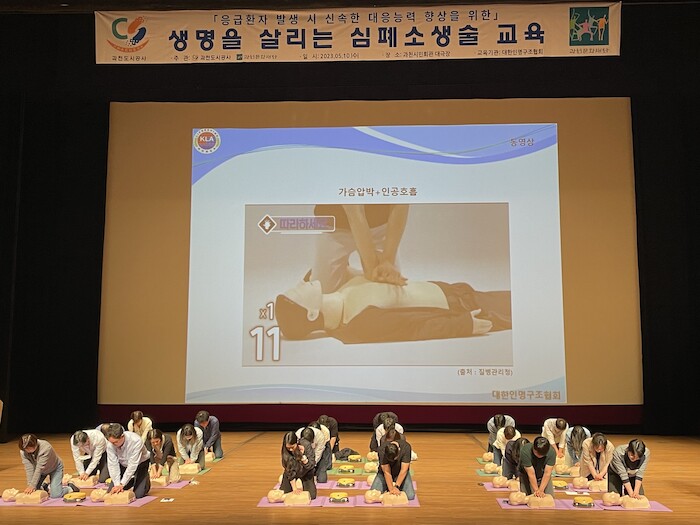 공사는 시민회관을 이용하는 고객들에게 위급상황일 발생할 경우 신속한 대처를 위해 심폐소생술 교육을 했다.