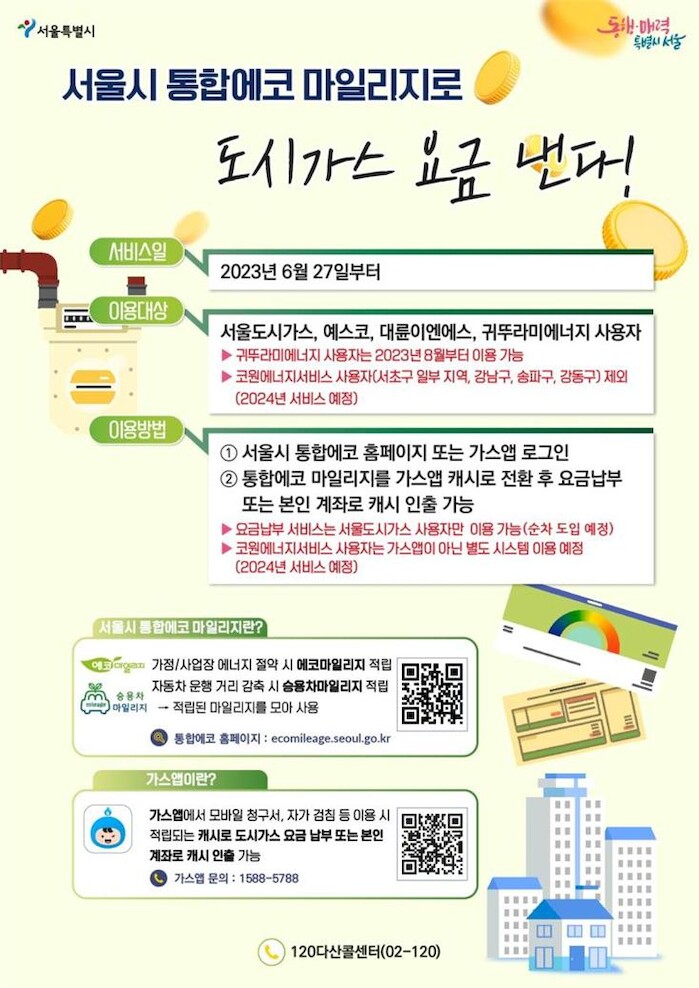 이달 27일부터는 에코·승용차마일리지를 ‘가스앱(도시가스 모바일앱)’ 캐시로 전환해 도시가스 요금을 낼 수 있다.